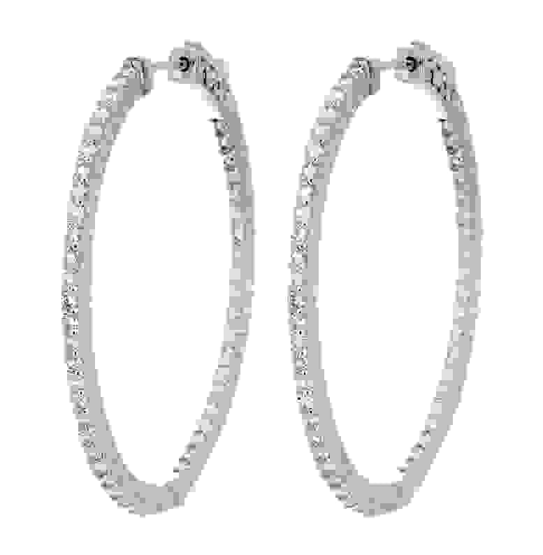 Lady's White 14 Karat Polish In And Out Hoop Earrings With 72=2.66Tw Round G I1 Diamonds