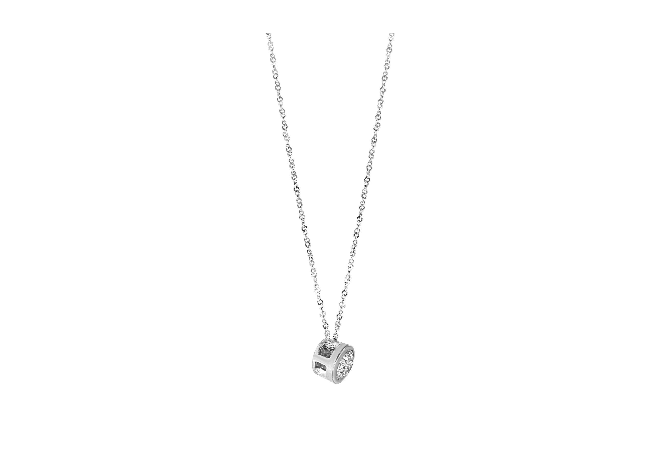 Lady's White 14 Karat Solitaire Necklace With One 0.20Ct Round I I1 Diamond Collection: Q3