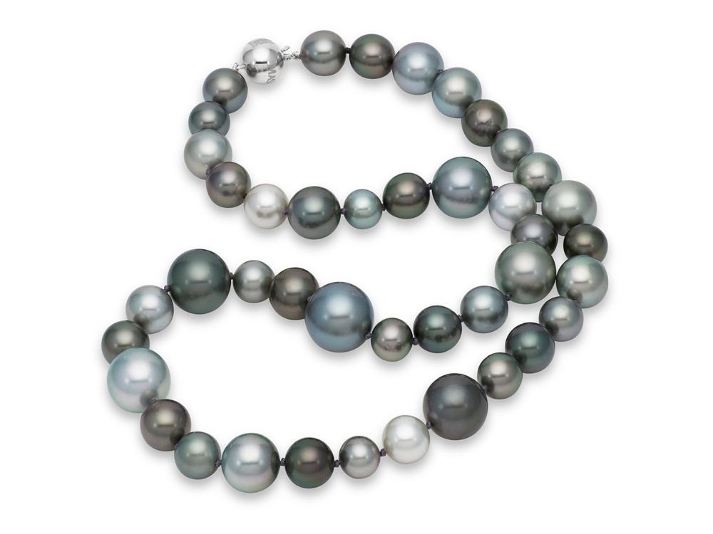 Lady's White 18 Karat Strand Length 17 With 43=8.00-14.00Mm Tahitian Multi Colored Pearls Style: Classic Single Strand