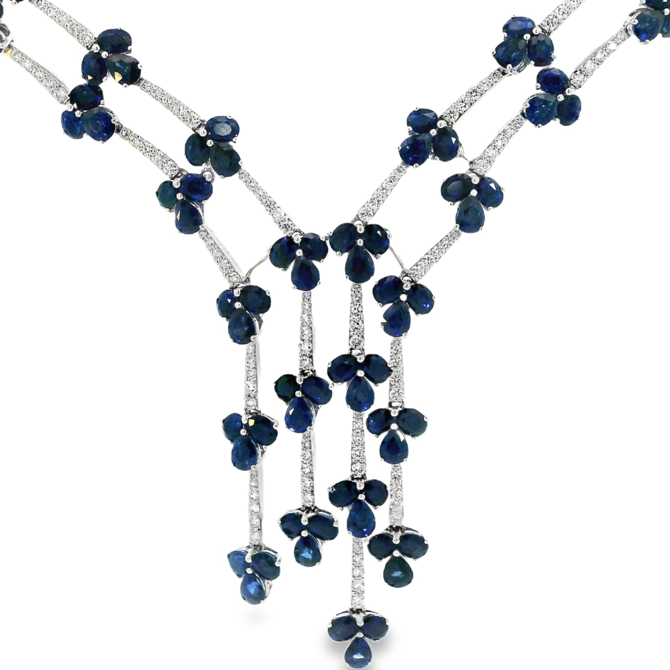 Lady's White 18 Karat Polish Lariat Necklace 223=62.01tw Various Shapes Sapphires 362=5.93tw Round G/H SI1 Diamonds