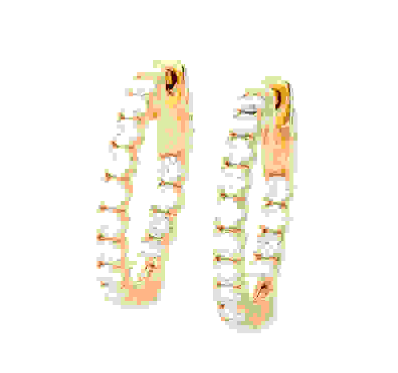 Lady's Yellow 14 Karat Polish Hoop Earrings With 10=1.05Tw Round G/H Si3 Diamonds