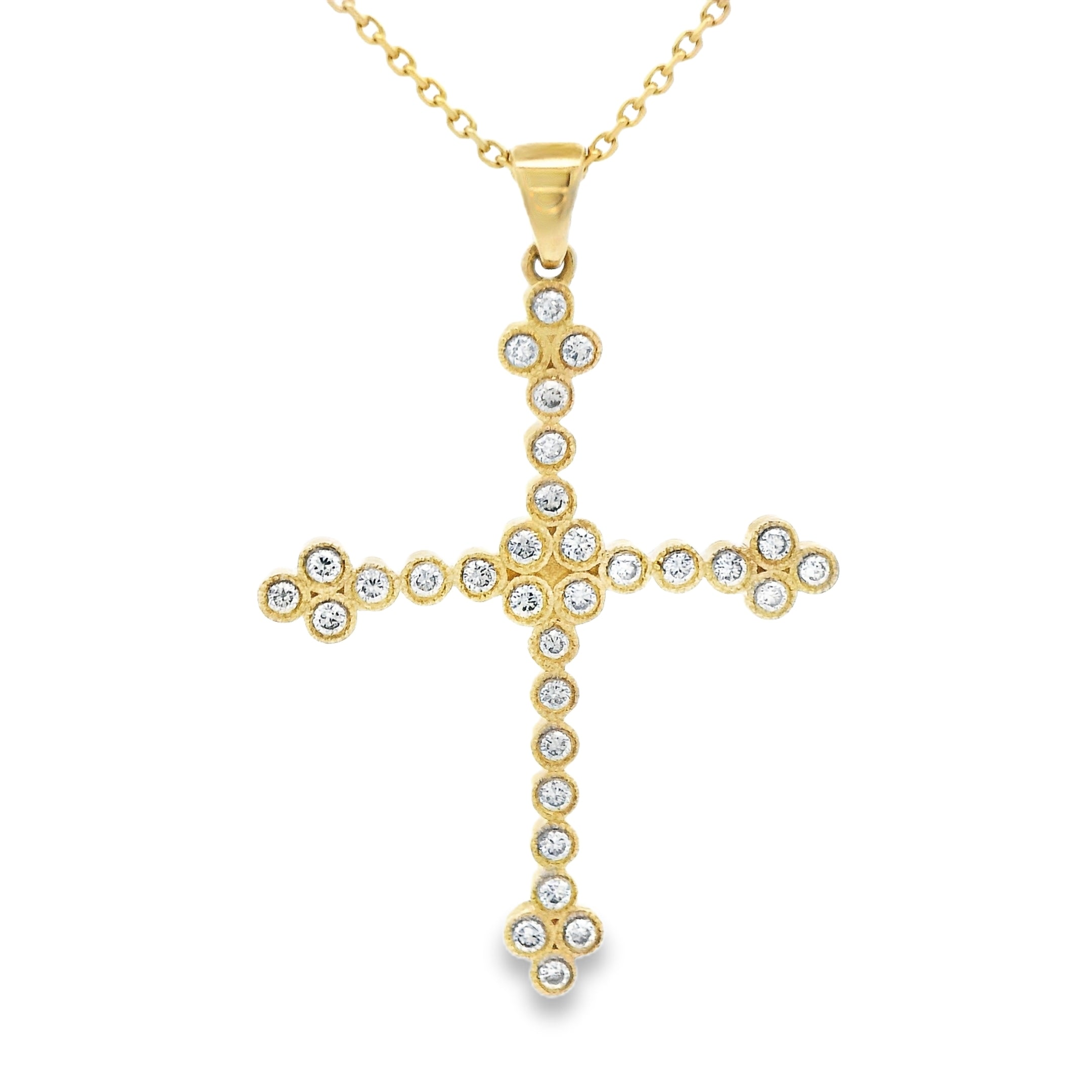 Lady's Yellow 14 Karat Polish Cross Necklace With 31=0.20Tw Round G/H Si2 Diamonds Serial #: 150794