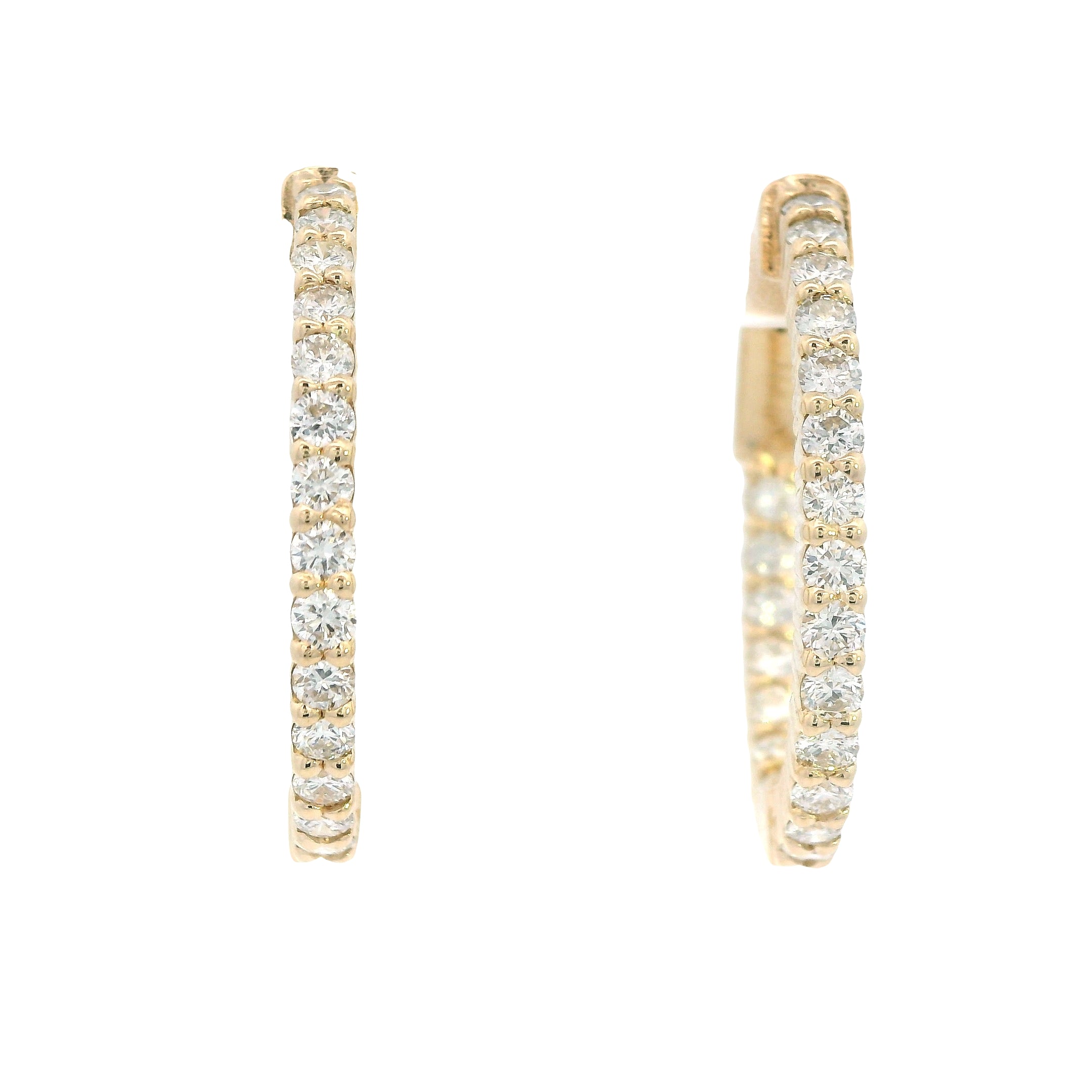 Lady's Yellow 14 Karat Polish In And Out Hoop Earrings With 42=1.28Tw Round G I1 Diamonds