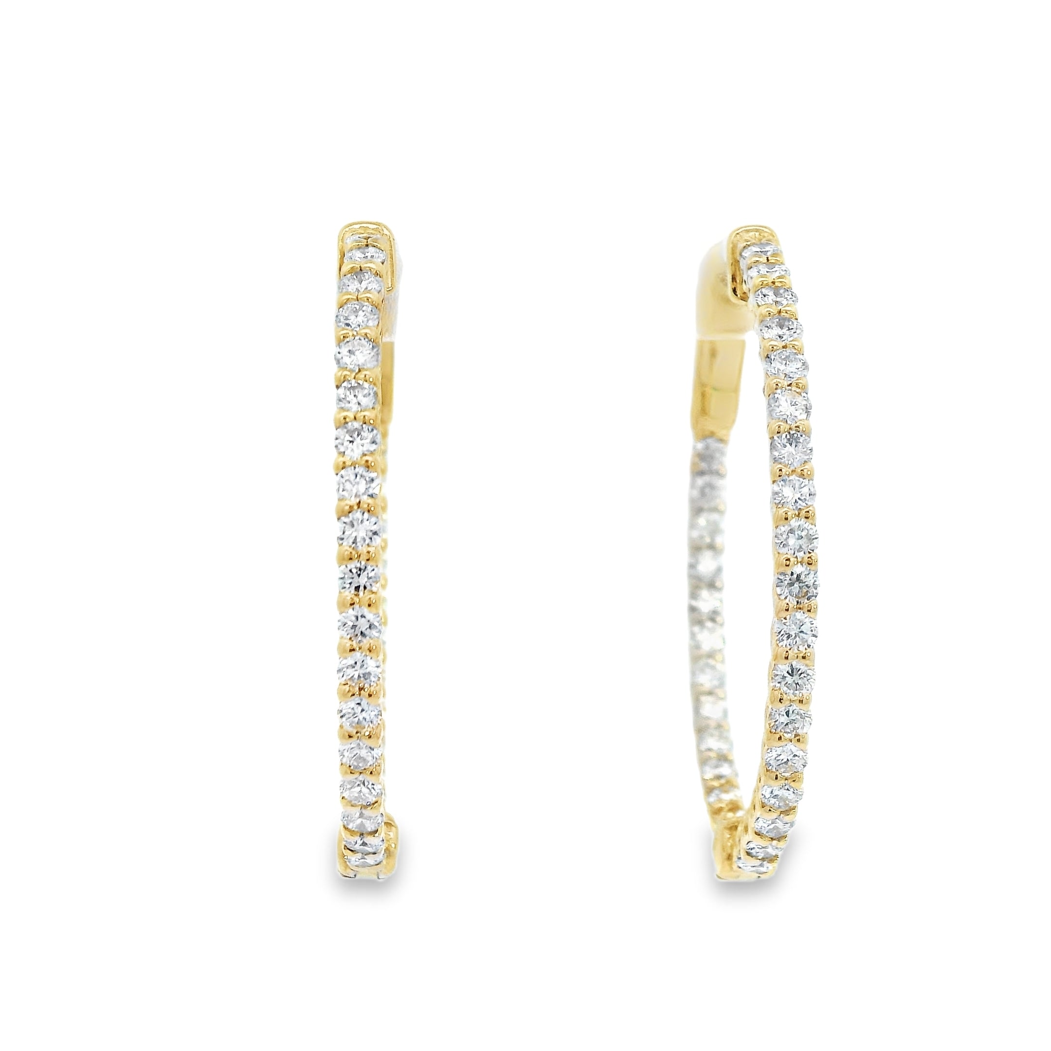 Lady's Yellow 14 Karat Polish Hoop Earrings With 40=2.02Tw Round G/H I1 Diamonds