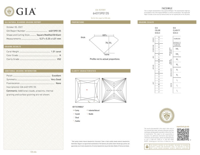 Loose Diamond With One 1.01Ct Princess Cut K Vs2 Diamond