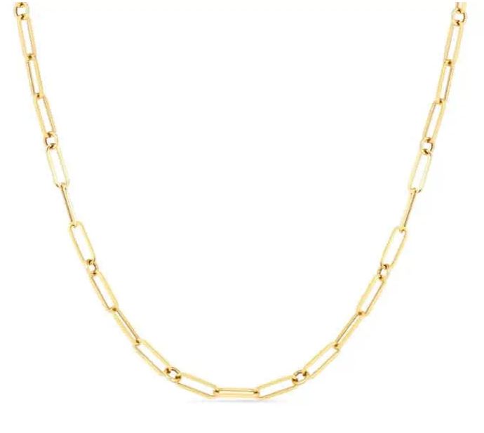 Yellow 18 Karat Polish Paperclip Link Oro Necklace Length 17 With One Round Ruby