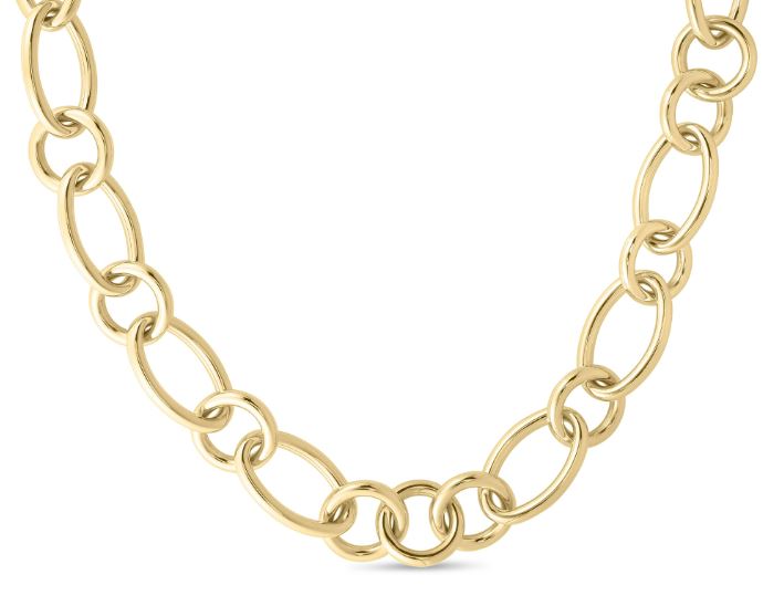 Yellow 18 Karat Beaded Link Necklace Length 18