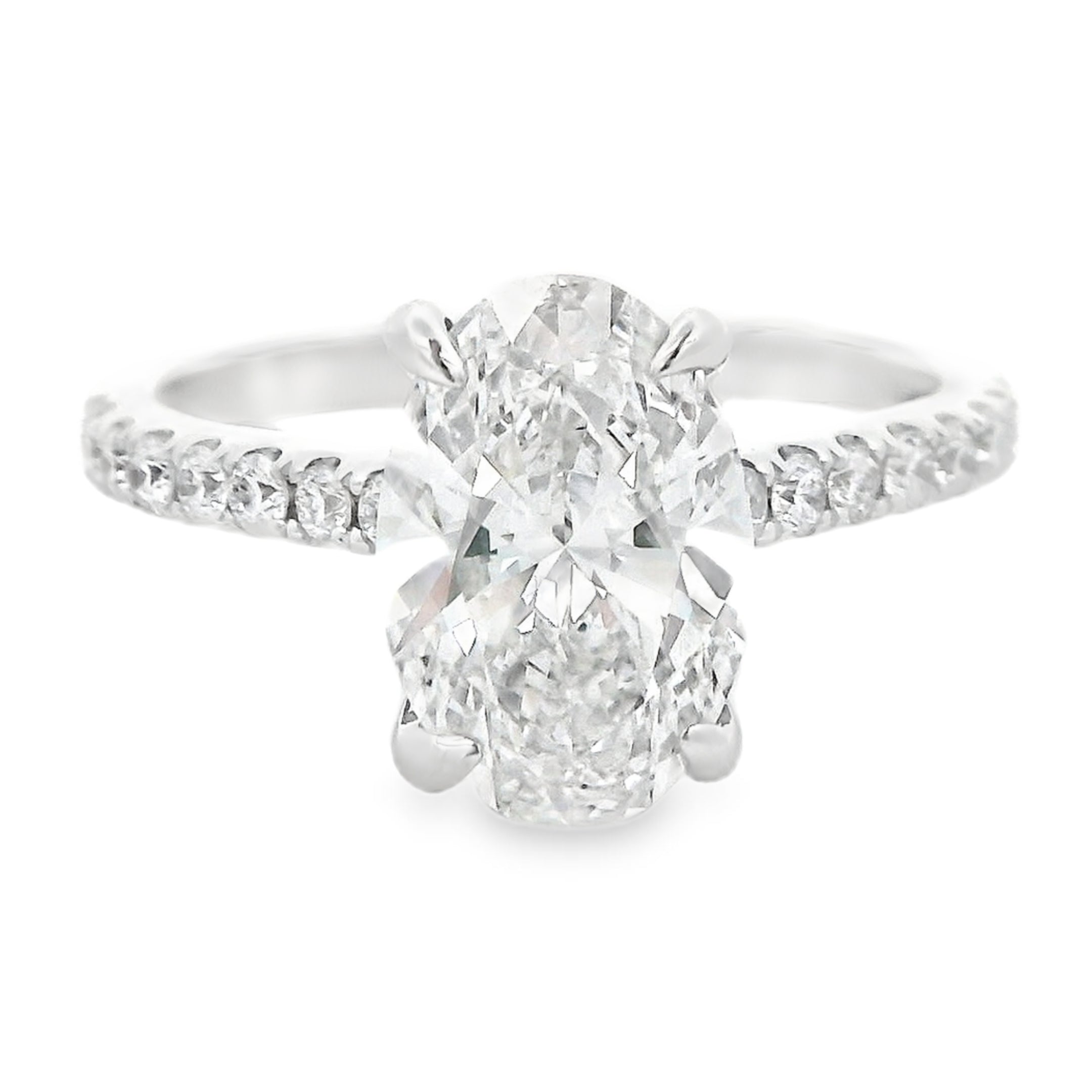 Lady's White 14 Karat Polish Classic Engagement Ring Size 7 With 0.33Tw Round Diamonds And One 2.00Ct Lab Created Oval F Vs1 Diamond