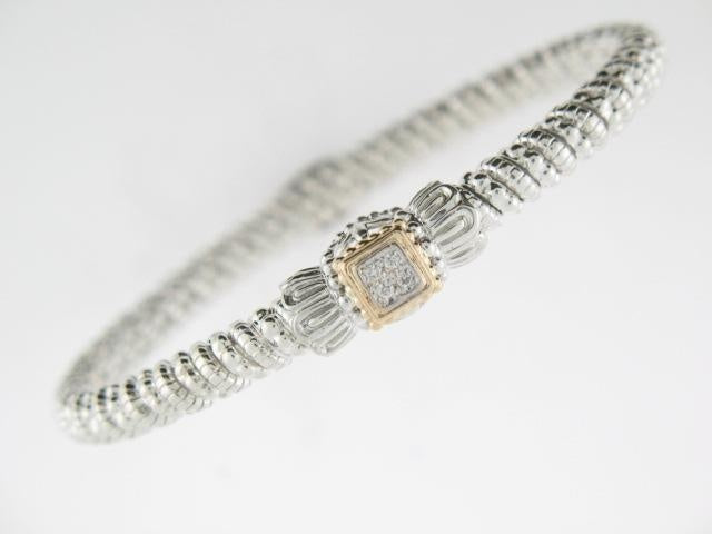 Lady's Two Tone 14K/Sterling Silver Bangle Bracelet With 0.04Tw Round Diamonds