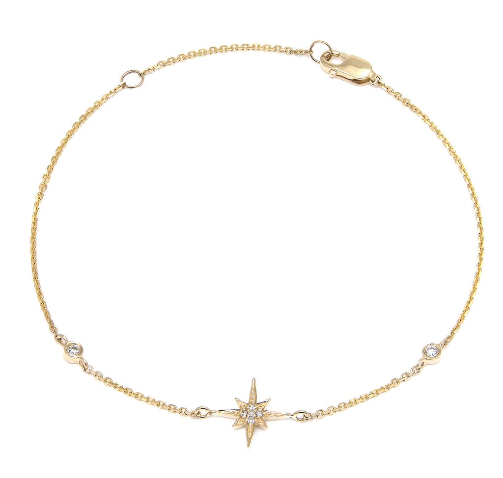 Lady's Yellow 14 Karat Polish Star Link Bracelet Length 7 With 0.06Tw Round H/I Si2 Diamonds Function: Adjustable
