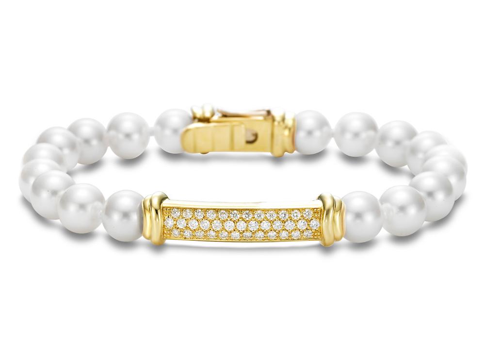Lady's Yellow 18 Karat Polish Sorrento Bar Bracelet With 37=0.45Tw Round H/I Si1 Diamonds And 20=7.00-7.50Mm Akoya Pearls Style: Strand