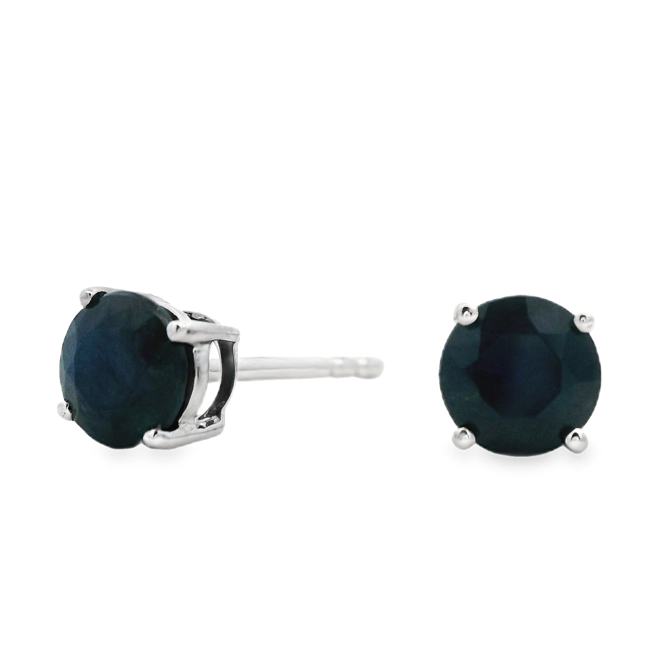 Lady's White Polish 14 Karat Stud Earrings With 2=1.04Tw Round Blue Sapphires 5MM