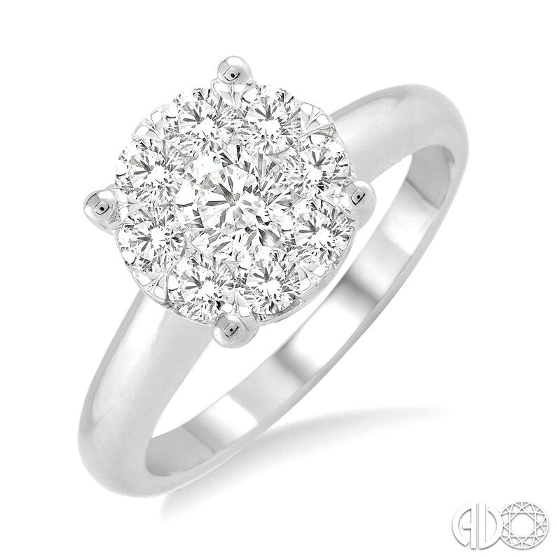 White 14 Karat Polish Cluster Inspired Engagement Ring Size 6.5 With 9=1.00Tw Round F/G Si2 Diamonds