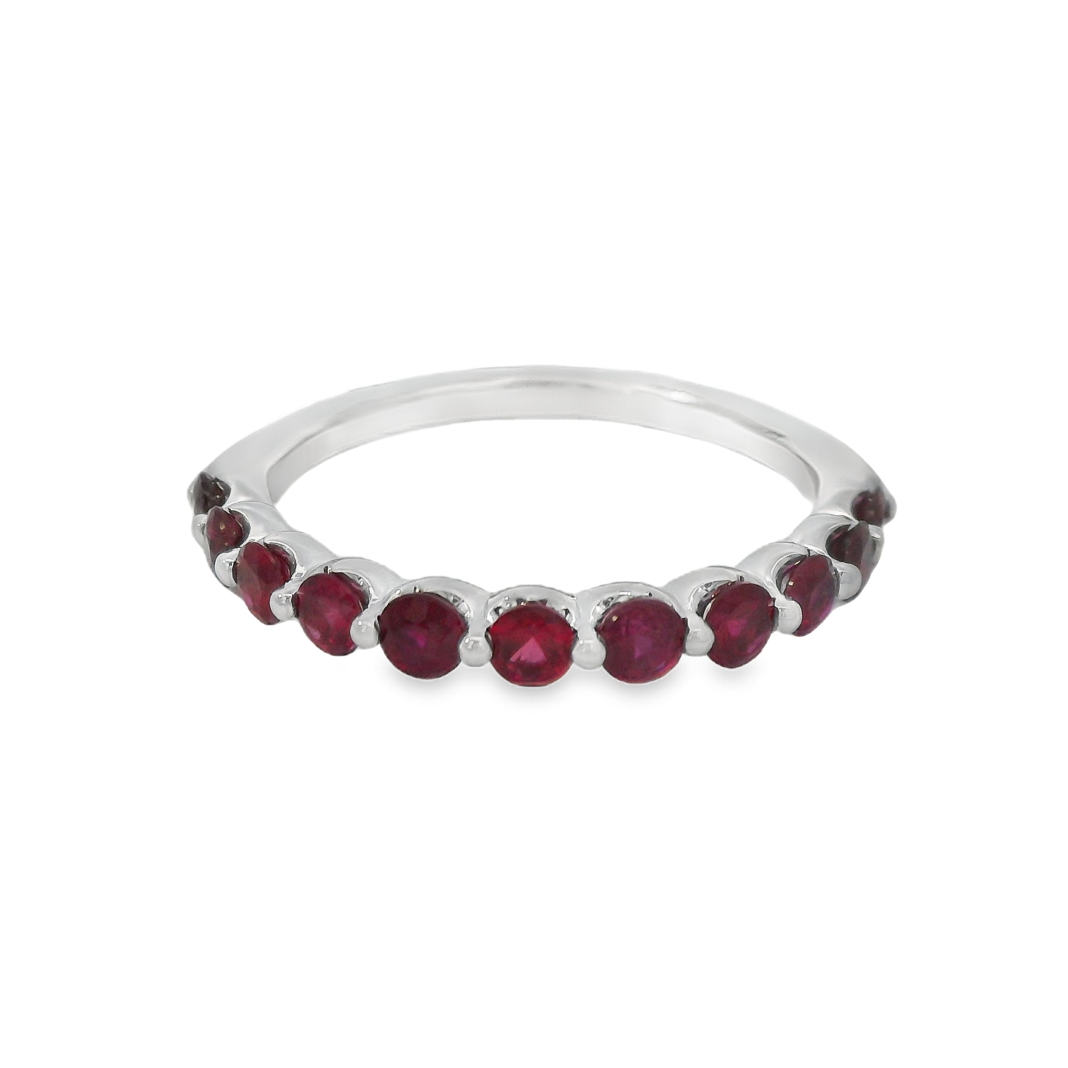 Lady's White 14 Karat Polish Stackable Fashion Ring Size 6.5 11=1.03tw Round Rubys