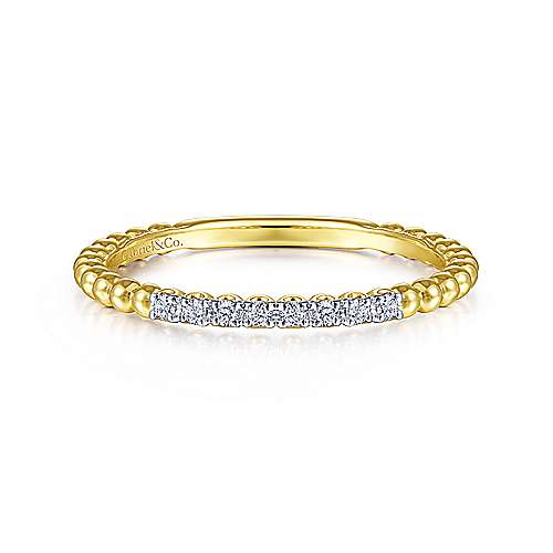 Lady's Two Tone Polish 14 Karat Beaded Stackable Fashion Ring Size 6.5 With 6=0.11Tw Round I/J Si2 Diamonds Collection: GAB: Bujukan Serial #: S1457107