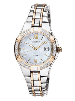Lady's White Stainless Steel Solar Watch With 18= Round Diamonds Strap/Brac.: Bracelet Clasp: Deployment Face: Mother of Pearl Collection: Core Comments: 18 Dia