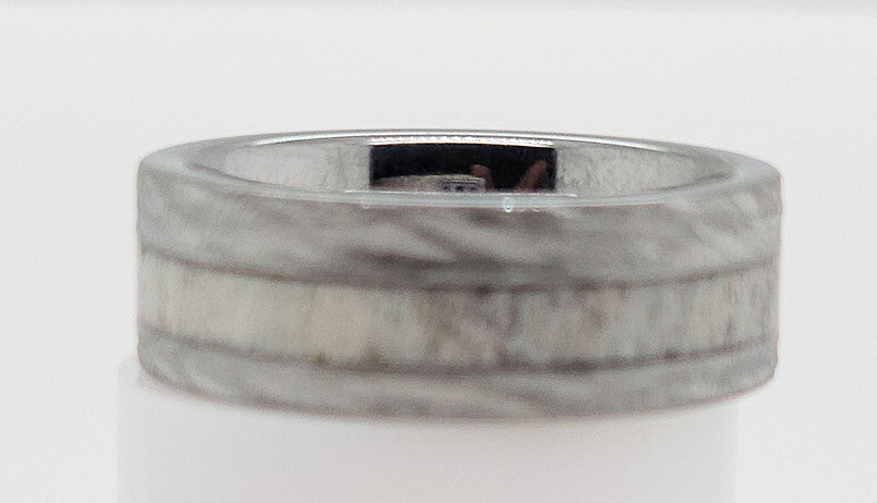 Ring Size 12.75 Style: Inlayed with Antler Metal: Tungsten Color: Gunmetal Finish: Bark Location: 504