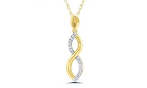 Lady's Yellow 10 Karat Polish Inspired Pendant Necklace Length 18 With 17=0.05Tw Round I/J I2 Diamonds