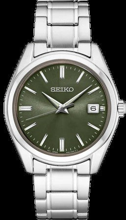 Gent's White Stainless Steel Quartz Watch Strap/Brac.: Bracelet Clasp: Deployment Face: Green Collection: Essentials