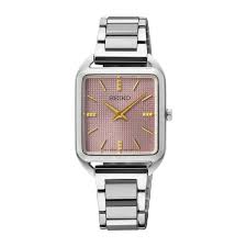 Lady's White Stainless Steel Automatic Watch Strap/Brac.: Bracelet Clasp: Deployment Face: Mauve Pink Grid Pattern Collection: Essentials