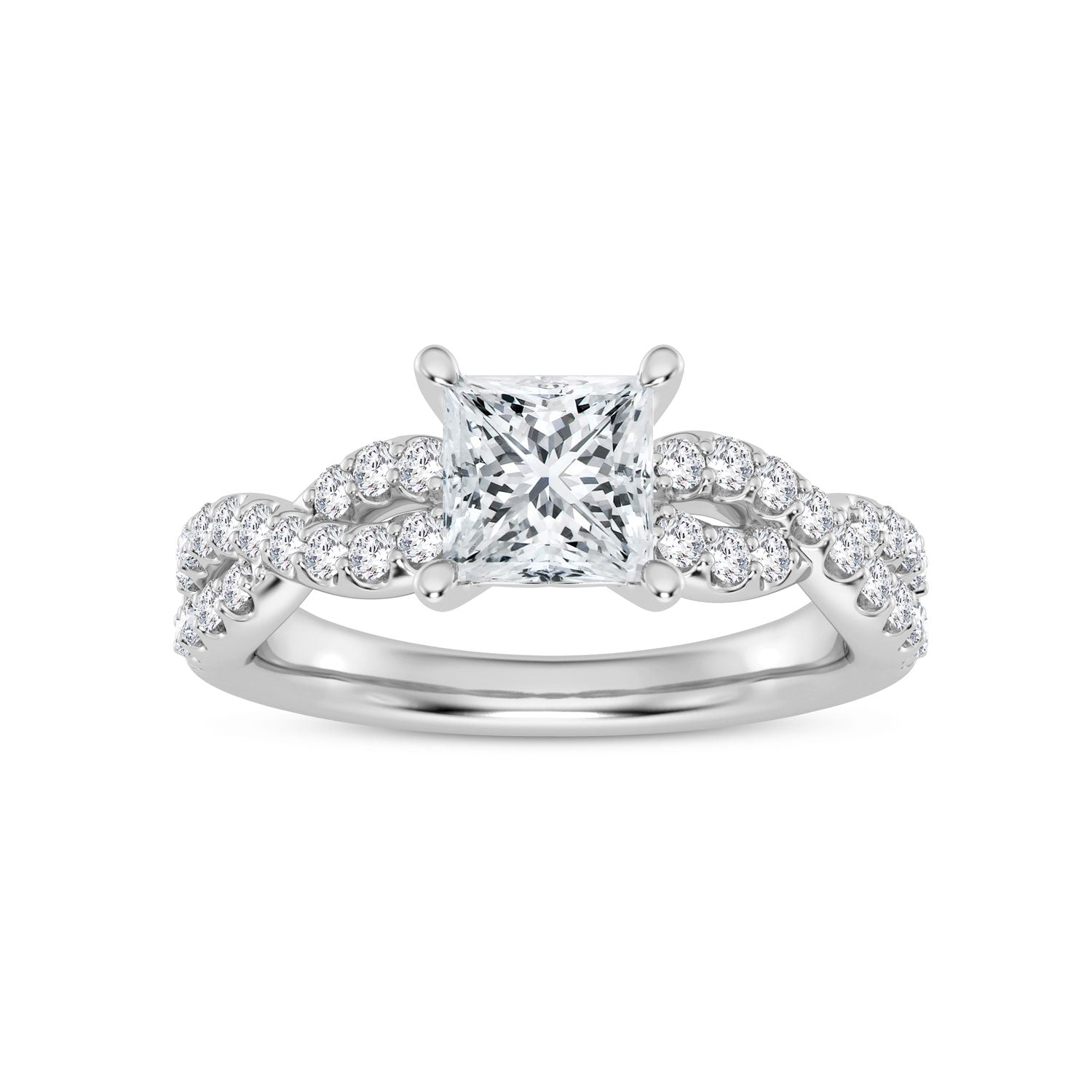 Lady's Polish Ring With 34=0.29Tw Round G/H Vs1 Diamonds And 28=0.10Tw Round G/H Vs1 Diamonds Head Style: Diamond Hidden Halo Head Size: 1.50 Carat Head Head Shape: Princess Head Metal: 14 Karat Metal Color: White Shank Collection: Faithful Shank Si