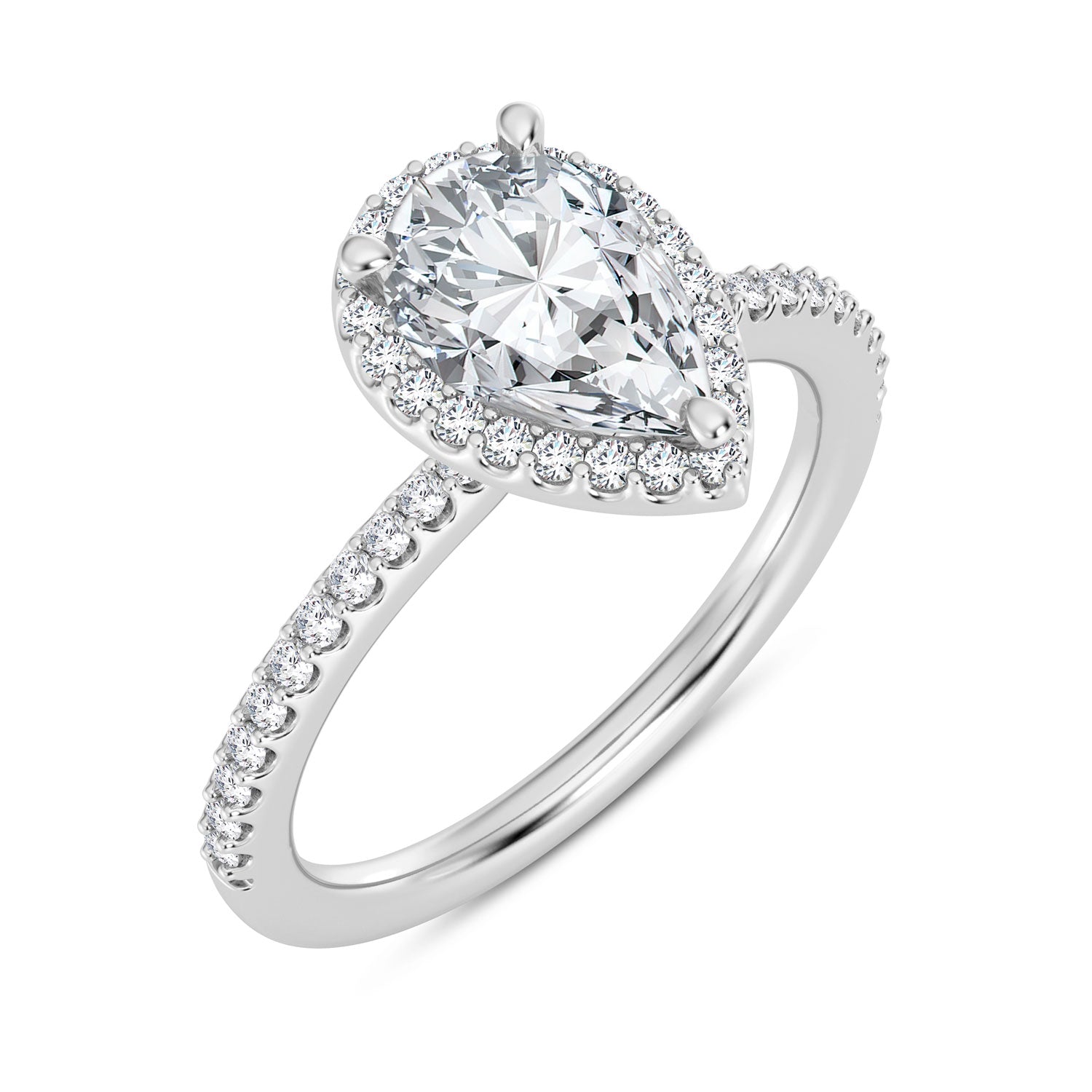 Lady's Polish Ring 26=0.17tw Round G/H VS1 Diamonds 22=0.09tw Round G/H VS1 Diamonds Head Style: Diamond Halo Head Size: 1.00 Carat Head Head Shape: Pear Head Metal: 14 Karat Metal Color: White Shank Collection: Adored Shank Size: Petite Ring Size