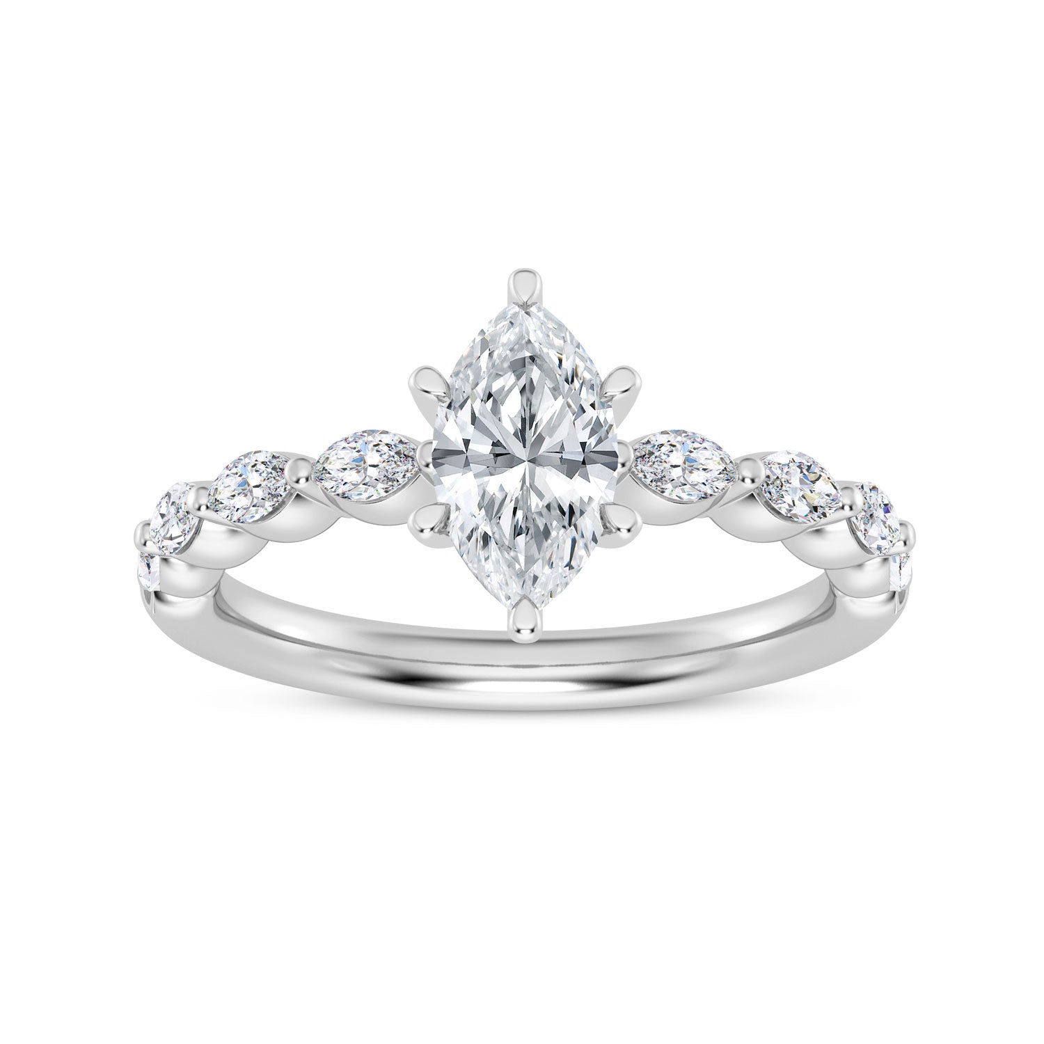 Lady's Polish Ring 14=0.34tw Marquise G/H VS1 Diamonds 12=0.03tw Round G/H VS1 Diamonds Head Style: Diamond Hidden Halo Head Size: 1.00 Carat Head Head Shape: Marquise Head Metal: 14 Karat Metal Color: White Shank Collection: Beloved Shank Size: Pe