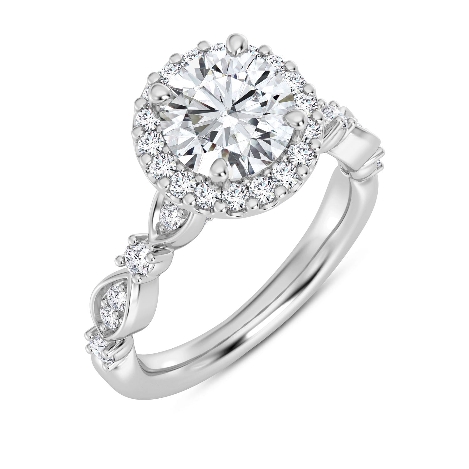 Lady's Milgrain Ring 18=0.18tw Round G/H VS1 Diamonds 26=0.24tw Round G/H VS1 Diamonds Head Style: Diamond Halo Head Size: 1.50 Carat Head Head Shape: Round Head Metal: 14 Karat Metal Color: White Shank Collection: Cherish Shank Size: Traditional R