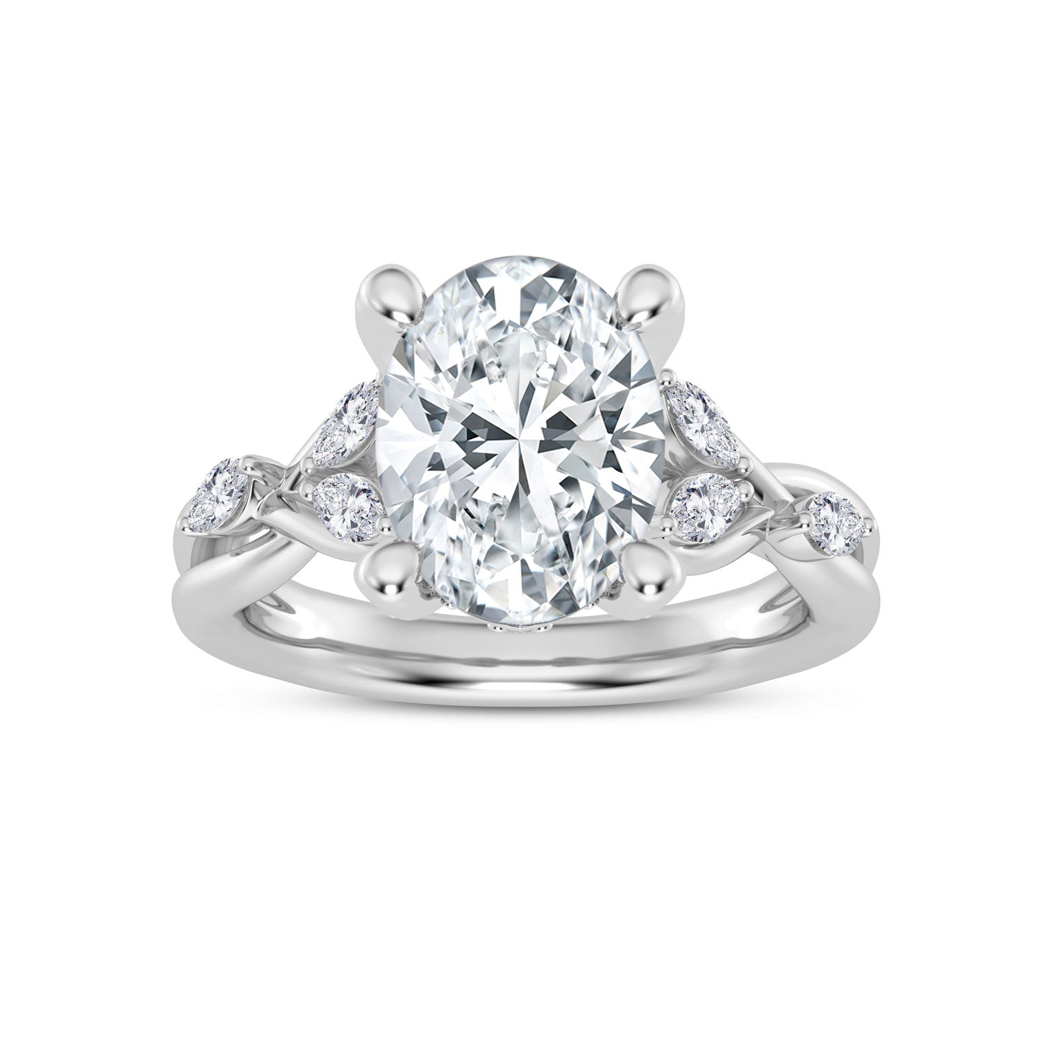 Lady's Polish Ring 28=0.09tw Round G/H VS1 Diamonds 24=0.42tw Round G/H VS1 Diamonds Head Style: Diamond Tiara Head Size: 1.50 Carat Head Head Shape: Oval Head Metal: 14 Karat Metal Color: White Shank Collection: Cherish Shank Size: Traditional Ri