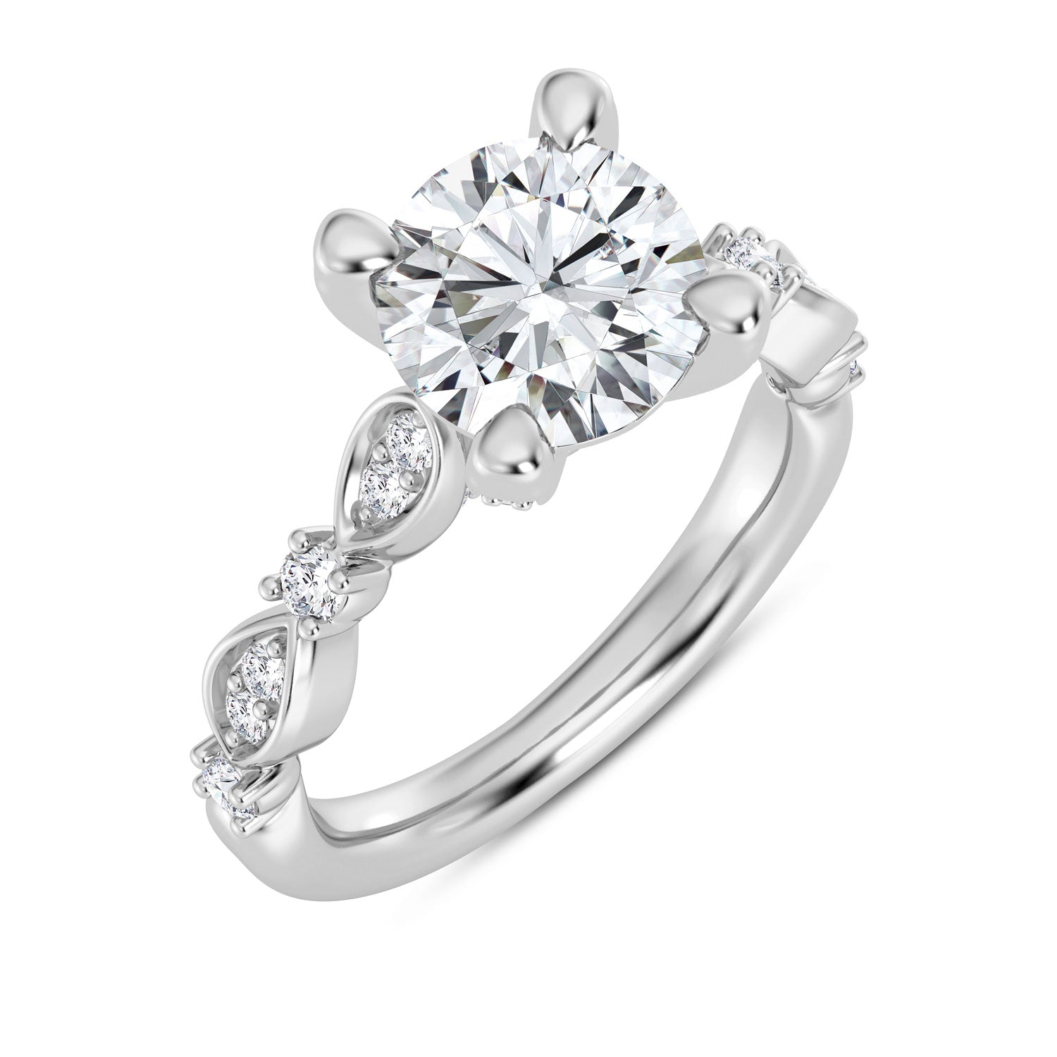 Lady's Milgrain Ring 28=0.10tw Round G/H VS1 Diamonds 26=0.24tw Round G/H VS1 Diamonds Head Style: Diamond Tiara Head Size: 1.50 Carat Head Head Shape: Round Head Metal: 14 Karat Metal Color: White Shank Collection: Cherish Shank Size: Traditional