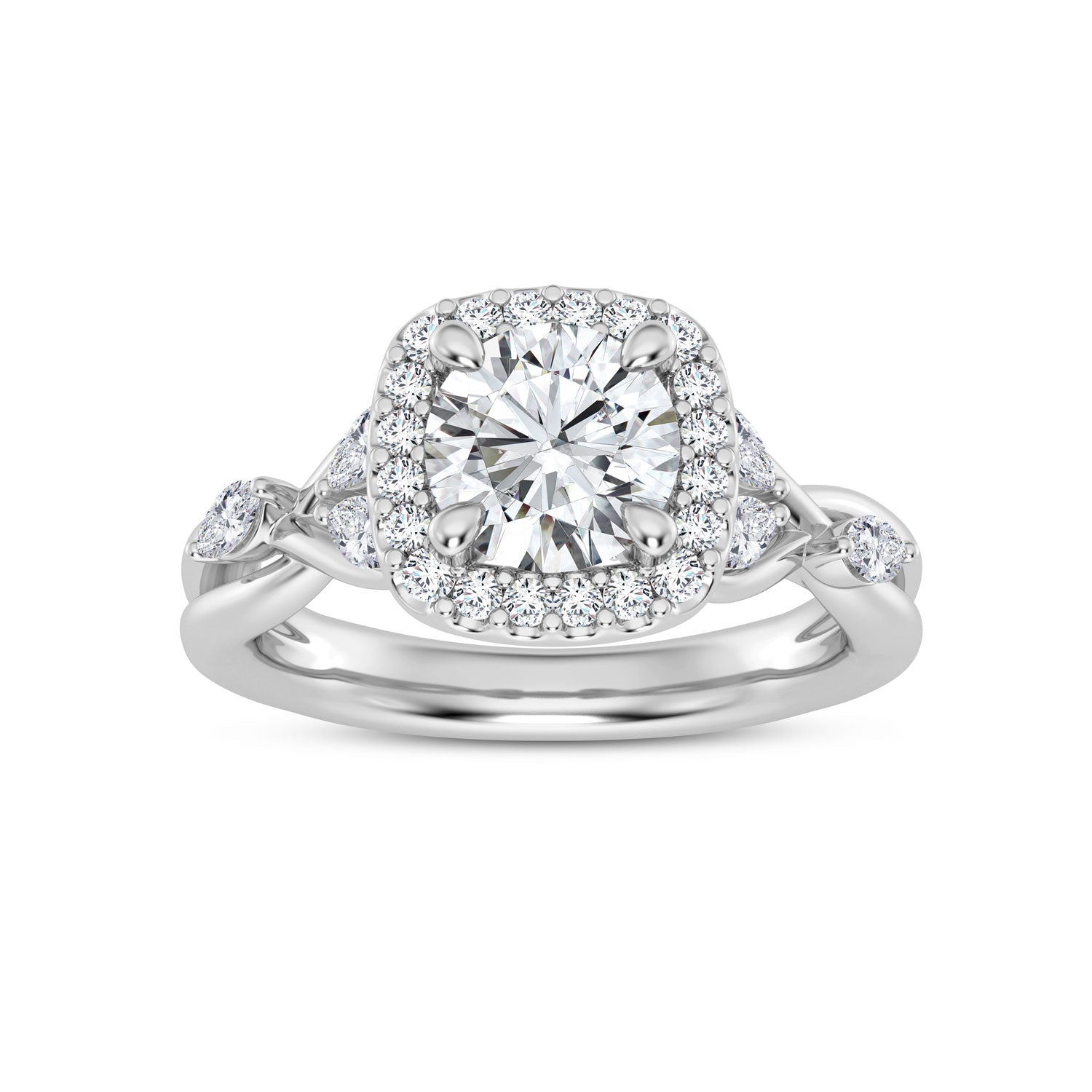 Lady's Polish Ring 20=0.18tw Round G/H VS1 Diamonds 24=0.42tw Round G/H VS1 Diamonds Head Style: Diamond Cushion Halo Head Size: 1.50 Carat Head Head Shape: Round Head Metal: 14 Karat Metal Color: White Shank Collection: Cherish Shank Size: Traditi