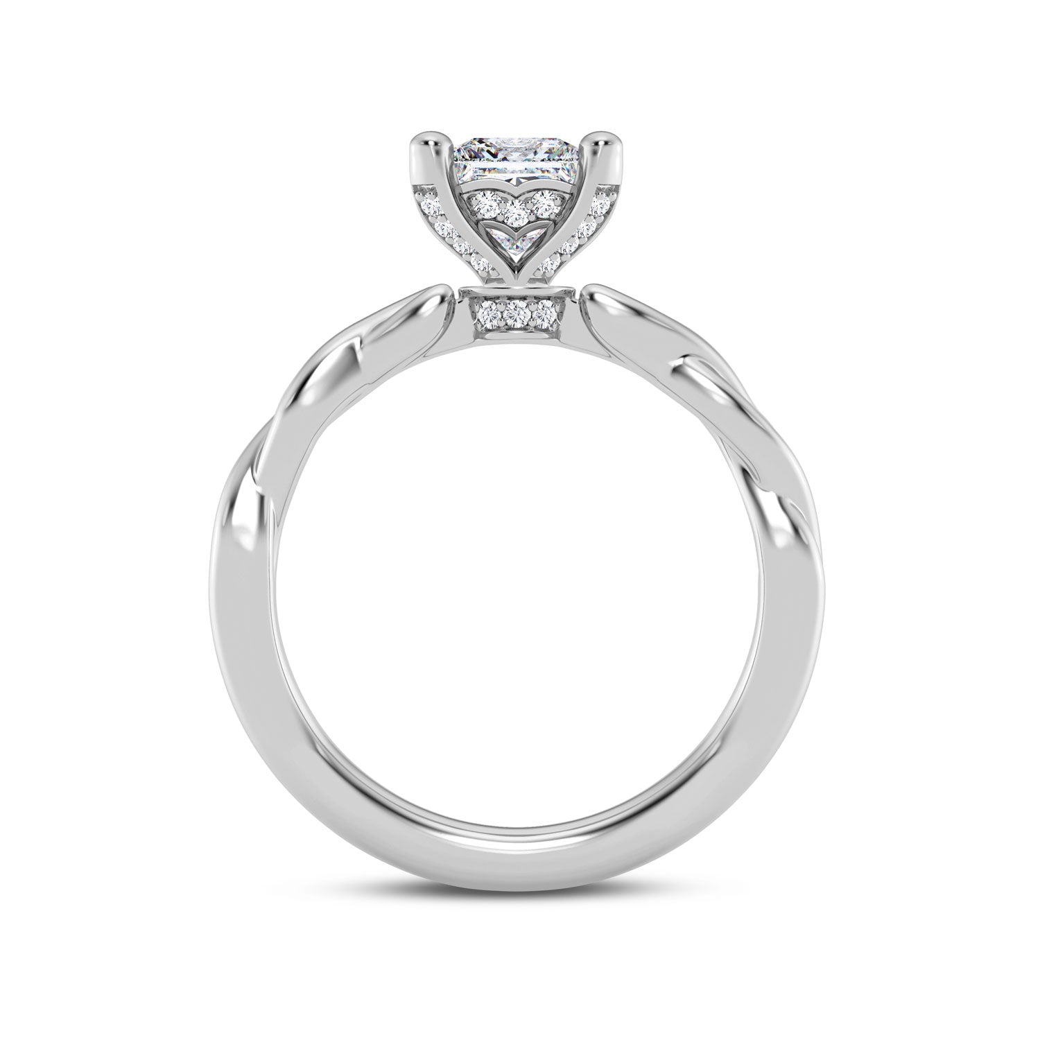 Lady's Polish Ring 6=0.02tw Round G/H VS1 Diamonds 28=0.09tw Round G/H VS1 Diamonds Head Style: Diamond Tiara Head Size: 1.00 Carat Head Head Shape: Princess Head Metal: 14 Karat Metal Color: White Shank Collection: Embrace Shank Size: Solitaire R
