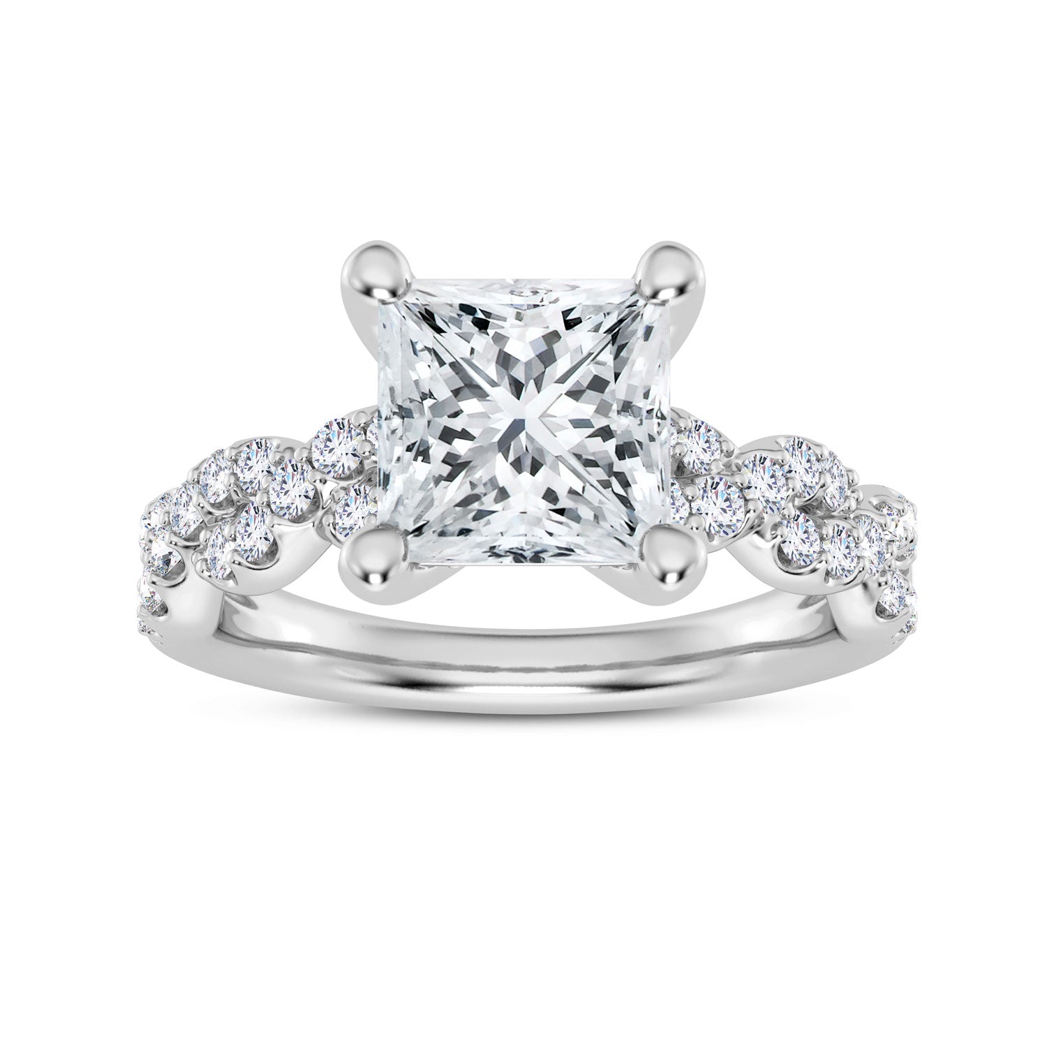 Lady's Polish Ring 36=0.44tw Round G/H VS1 Diamonds 28=0.10tw Round G/H VS1 Diamonds Head Style: Diamond Crown Head Size: 1.50 Carat Head Head Shape: Princess Head Metal: 14 Karat Metal Color: White Shank Collection: Embrace Shank Size: Traditional