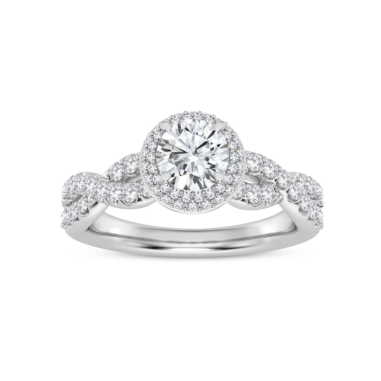 Lady's Polish Ring 38=0.41tw Round G/H VS1 Diamonds 44=0.40tw Round G/H VS1 Diamonds Head Style: Waterfall Diamond Halo Head Size: 1.50 Carat Head Head Shape: Round Head Metal: 14 Karat Metal Color: White Shank Collection: Endless Shank Size: Tradi