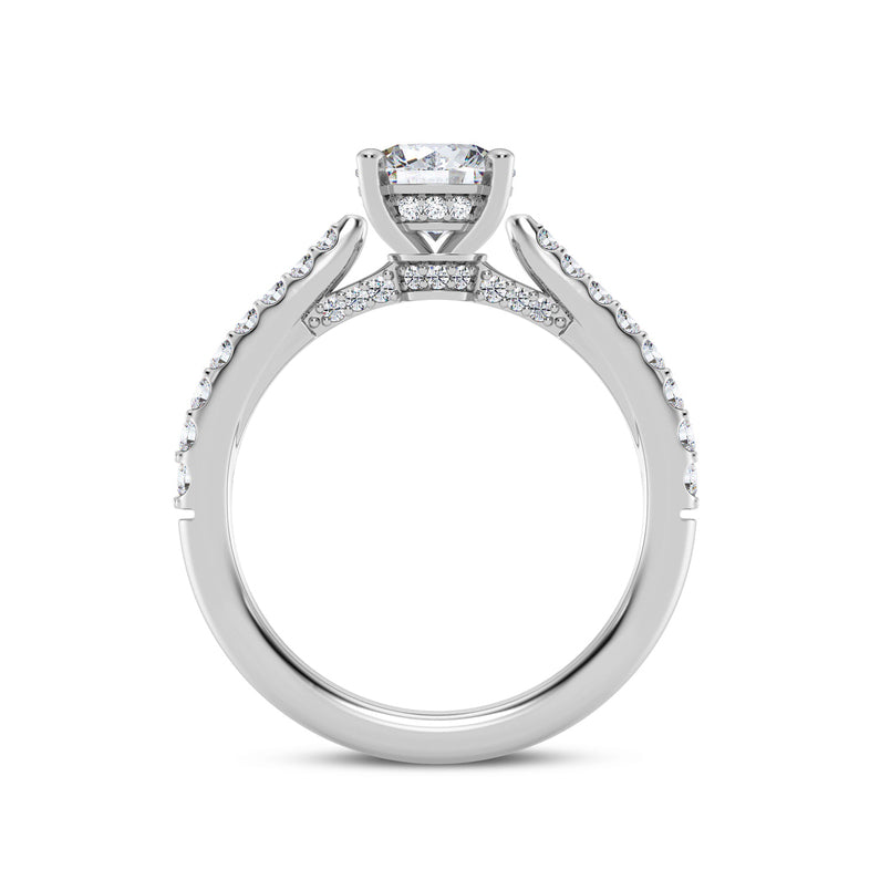 Lady's Ring 34=0.29tw Round G/H VS1 Diamonds 12=0.05tw Round G/H VS1 Diamonds Head Style: Diamond Hidden Halo Head Size: 1.50 Carat Head Head Shape: Round Head Metal: 14 Karat Metal Color: White Shank Collection: Faithful Shank Size: Traditional R