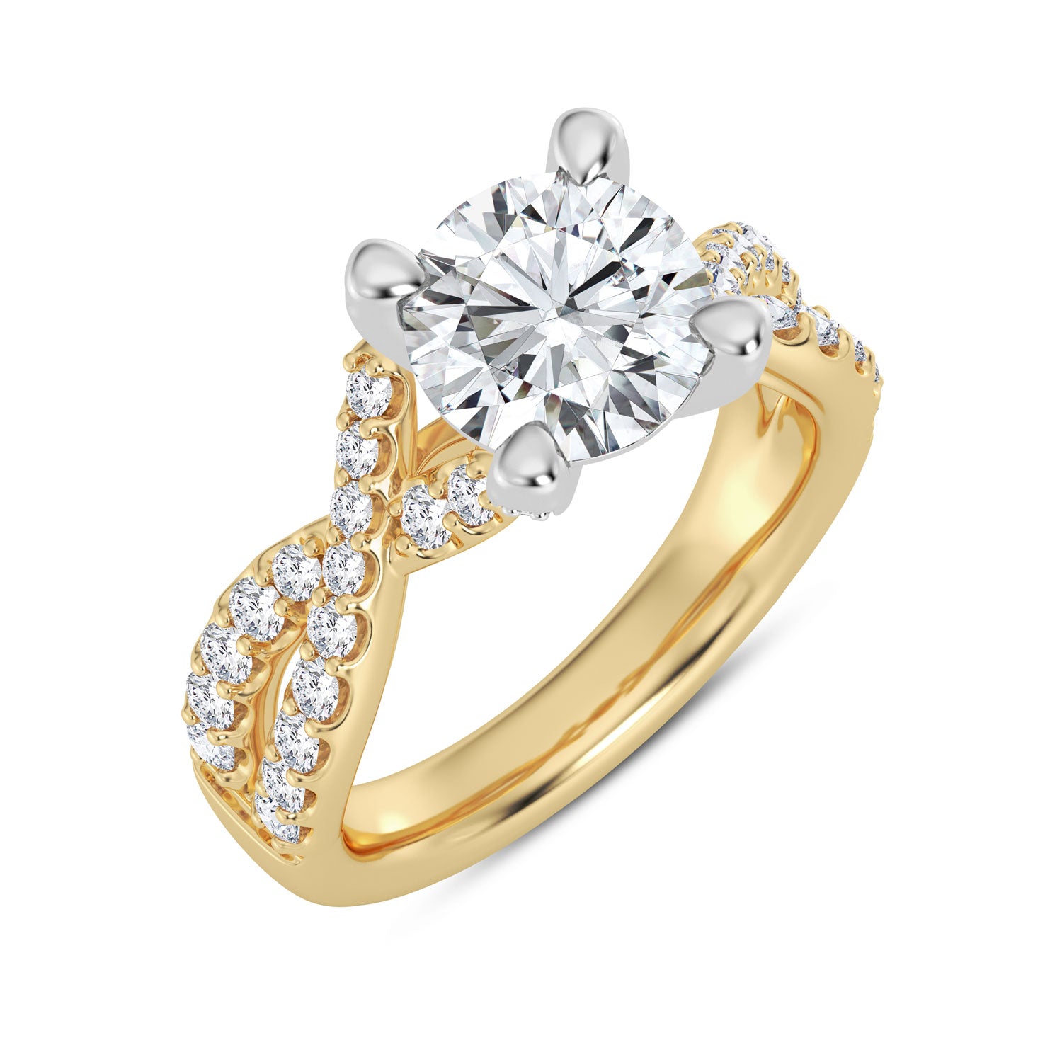 Lady's Polish Ring 28=0.10tw Round G/H VS1 Diamonds 38=0.57tw Round G/H VS1 Diamonds Head Style: Diamond Tiara Head Size: 1.50 Carat Head Head Shape: Round Head Metal: 14 Karat Metal Color: Two-Tone Shank Collection: Starcrossed Shank Size: Traditi