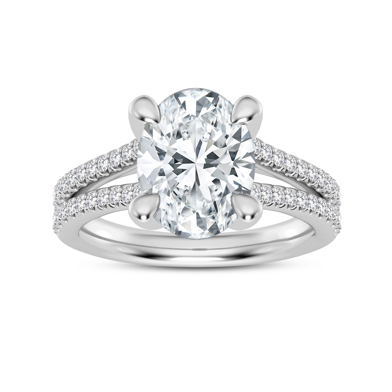 Lady's Polish Ring 50=0.34tw Round G/H VS1 Diamonds 26=0.09tw Round G/H VS1 Diamonds Head Style: Diamond Crown Head Size: 1.00 Carat Head Head Shape: Oval Head Metal: 14 Karat Metal Color: White Shank Collection: Te Amo Shank Size: Petite Ring Siz
