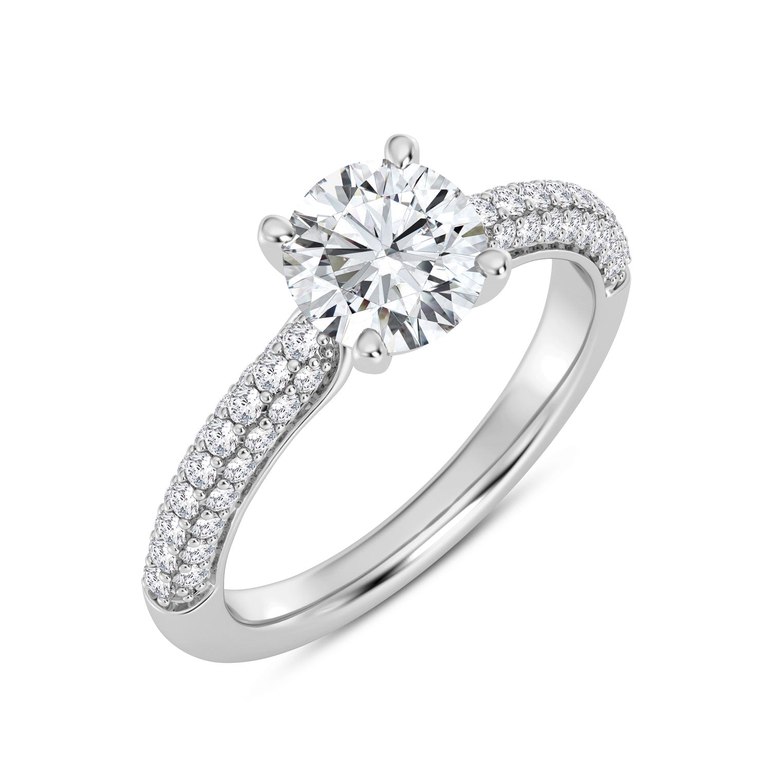 Lady's Polish Ring 56=0.37tw Round G/H VS1 Diamonds Head Style: Signature Tiara Head Size: 1.00 Carat Head Head Shape: Round Head Metal: 14 Karat Metal Color: White Shank Collection: Voyage Shank Size: Petite Ring Size: 7