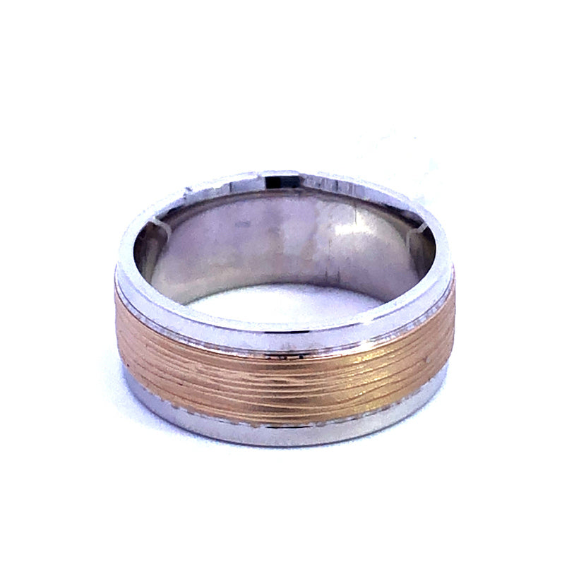 Ring Size 11 Style: Etched Metal: 14 Karat Color: Two Tone Finish: Satin