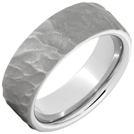 White Serinium Sand Blast Pipe Cut Wedding Band Size 9.5
